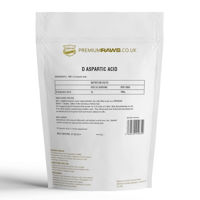 We suggest using D-Aspartic Acid powder for 4-8 weeks at a time, then discontinuing use for 4-8 weeks before commencing another cycle. This will prevent your body from becoming too acclimatised to D-Aspartic Acid and ensure optimal results.